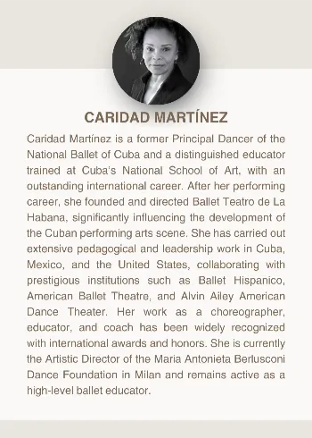 Teaching masters Caridad Martínez, Claudia Zaccari, and Nicola Tranah will share their artistic and pedagogical experience with teachers from the Dominican Republic and other countries, creating an environment of international dialogue and professional growth.